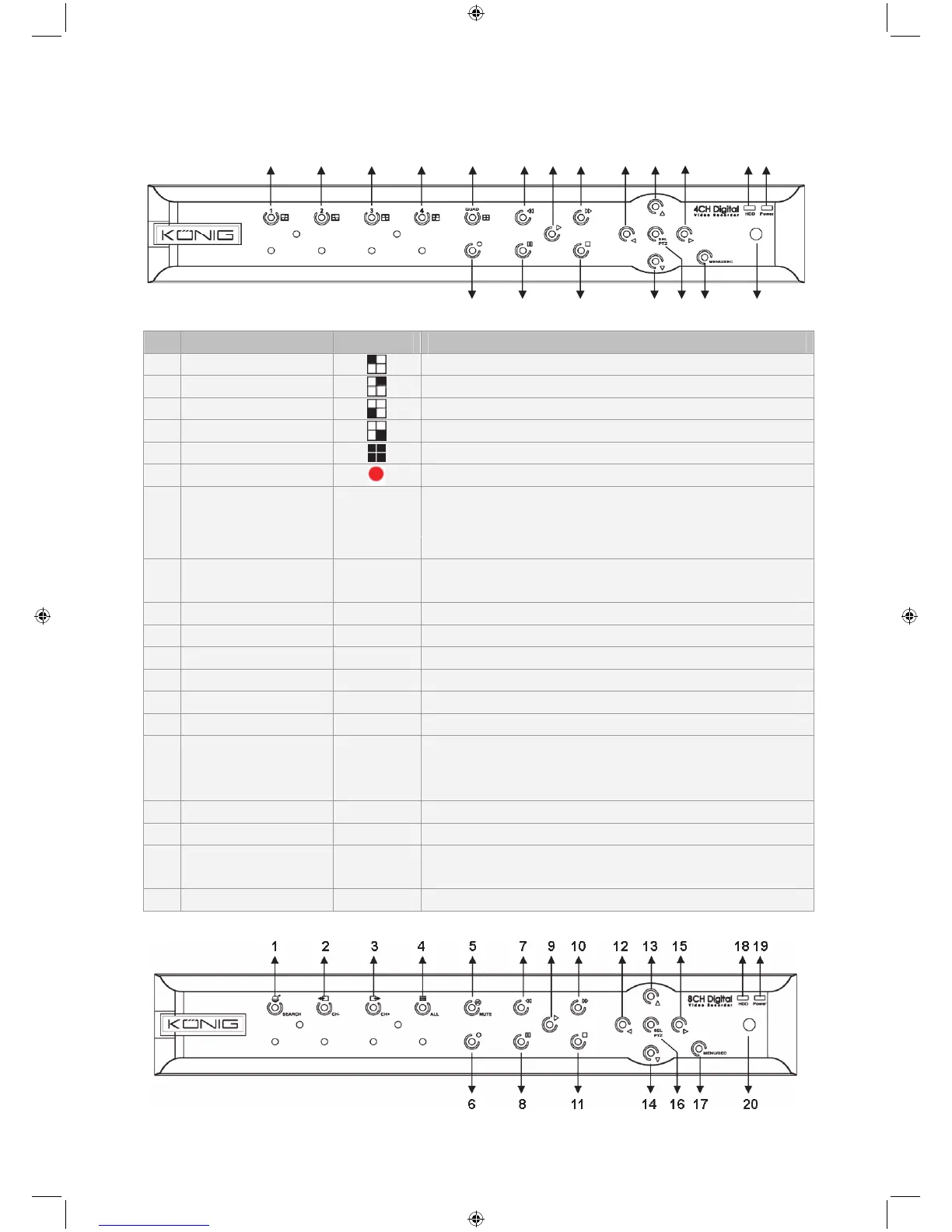 Περιγραφή εμπρόσθιου πίνακα SEC-DVR404: