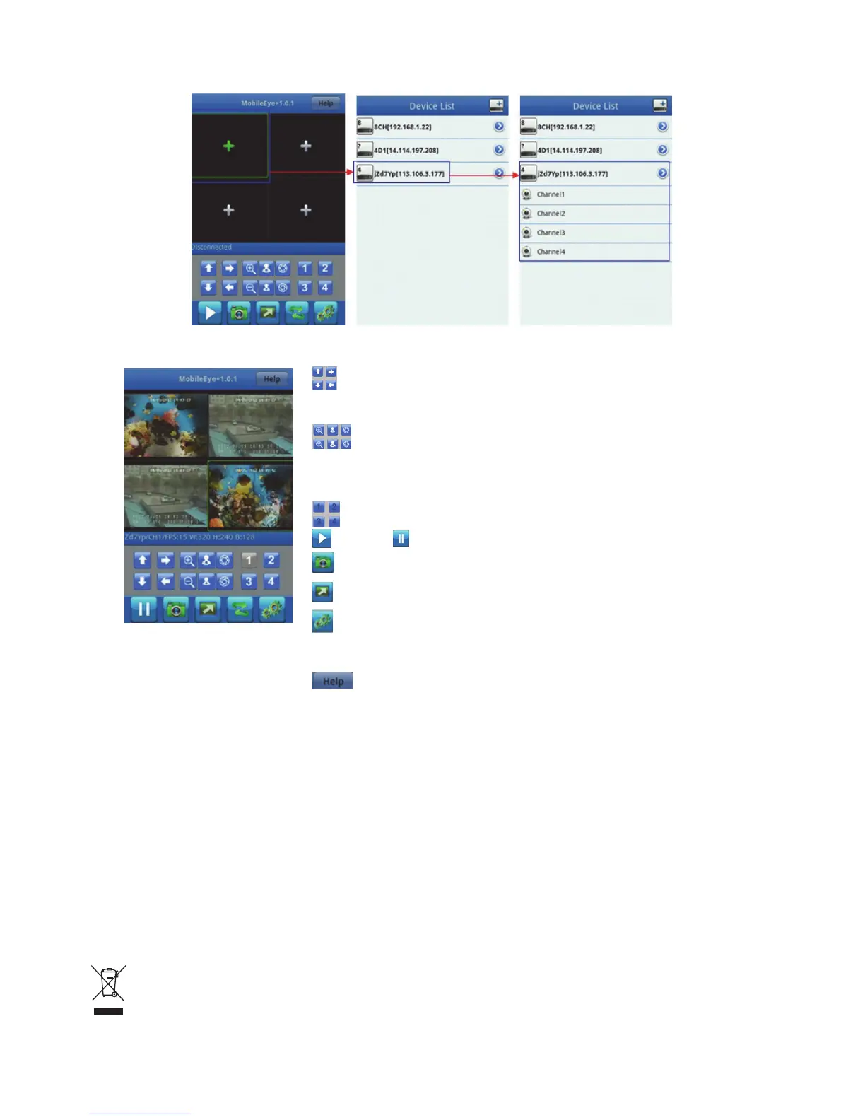 estão ligados à câmara PTZ, usando os ícones seguintes para controlar o PTZ.
