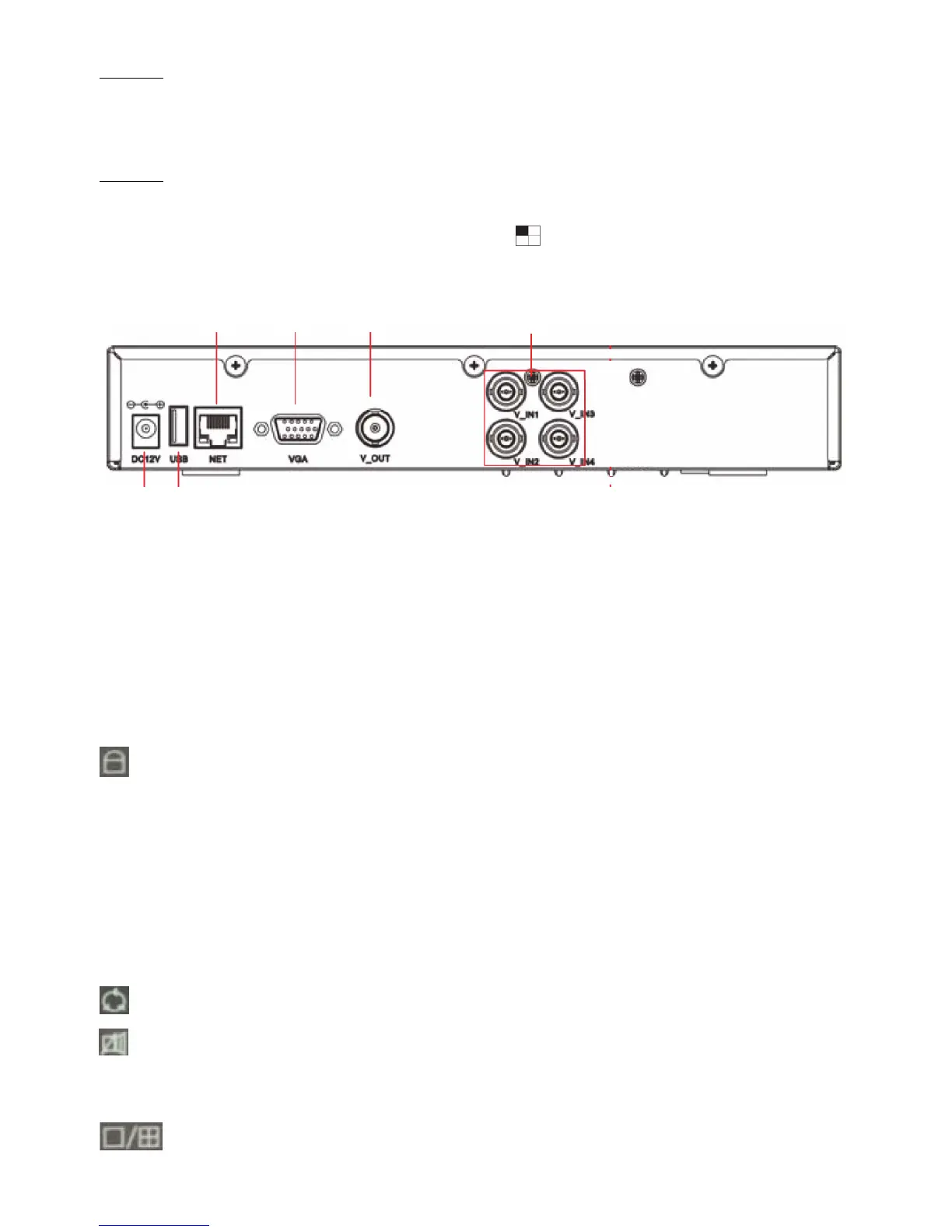 4. BNC bemeneti csatlakozók a kamerák bekötésére