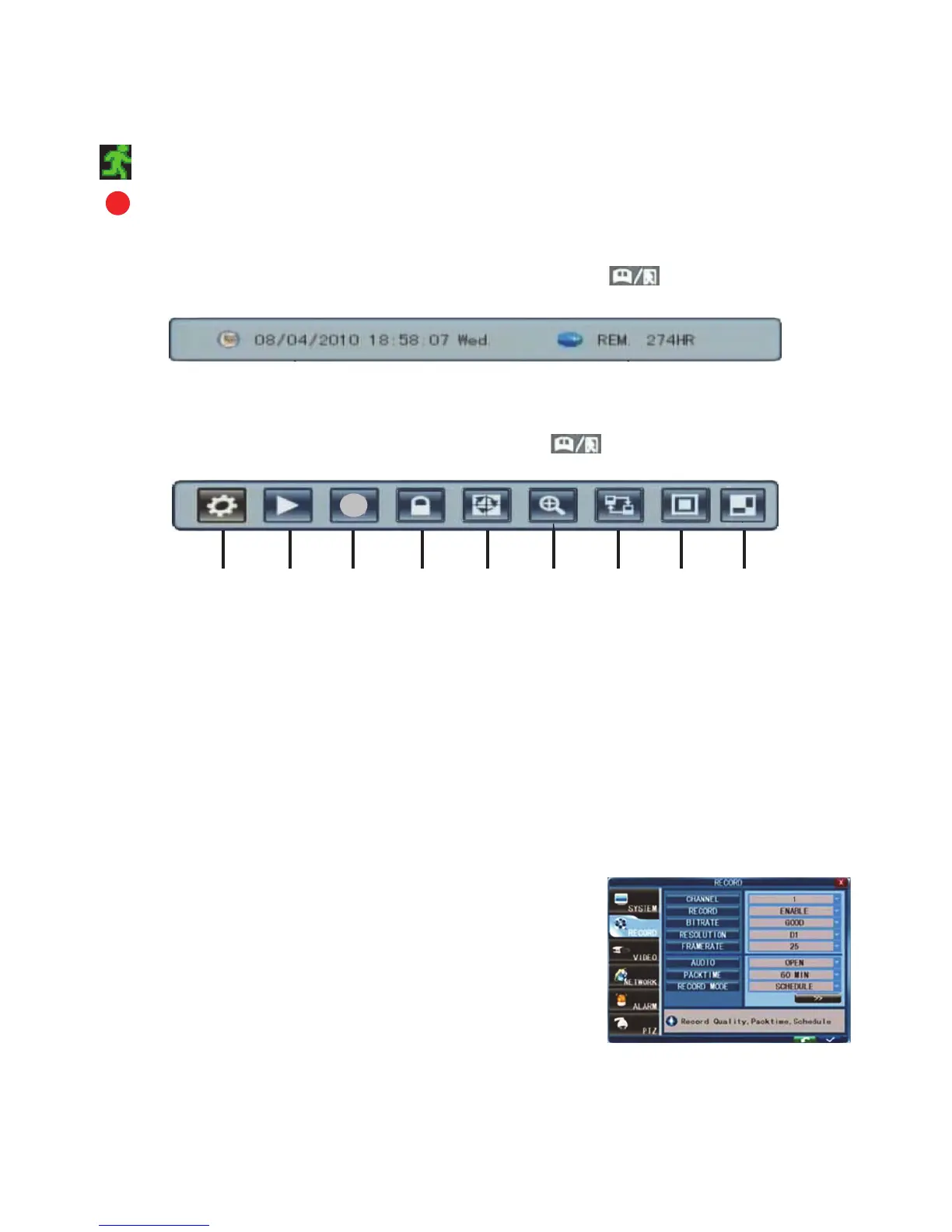 A piros pont azt jelenti, hogy a csatornán felvétel folyik.