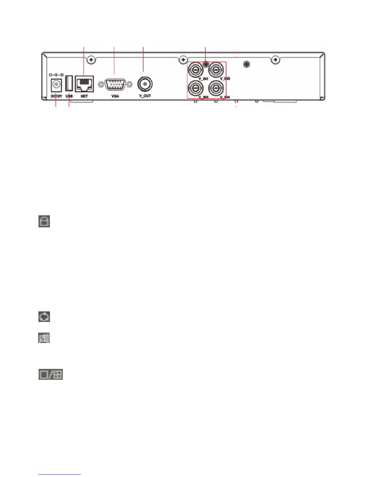 DVR:n takapaneelin liitäntöjen kuvaukset: