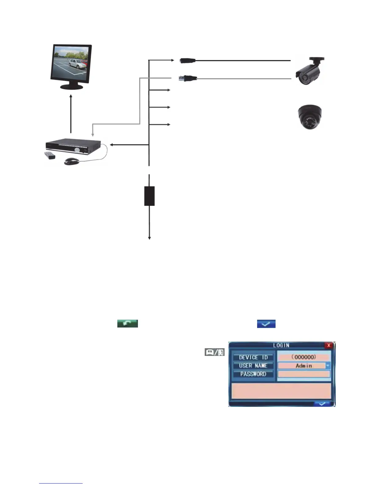 Huomaa: DVR-laitteeseen sisäänkirjautuminen on välttämätöntä valikoihin pääsemiseksi ja asetusten
