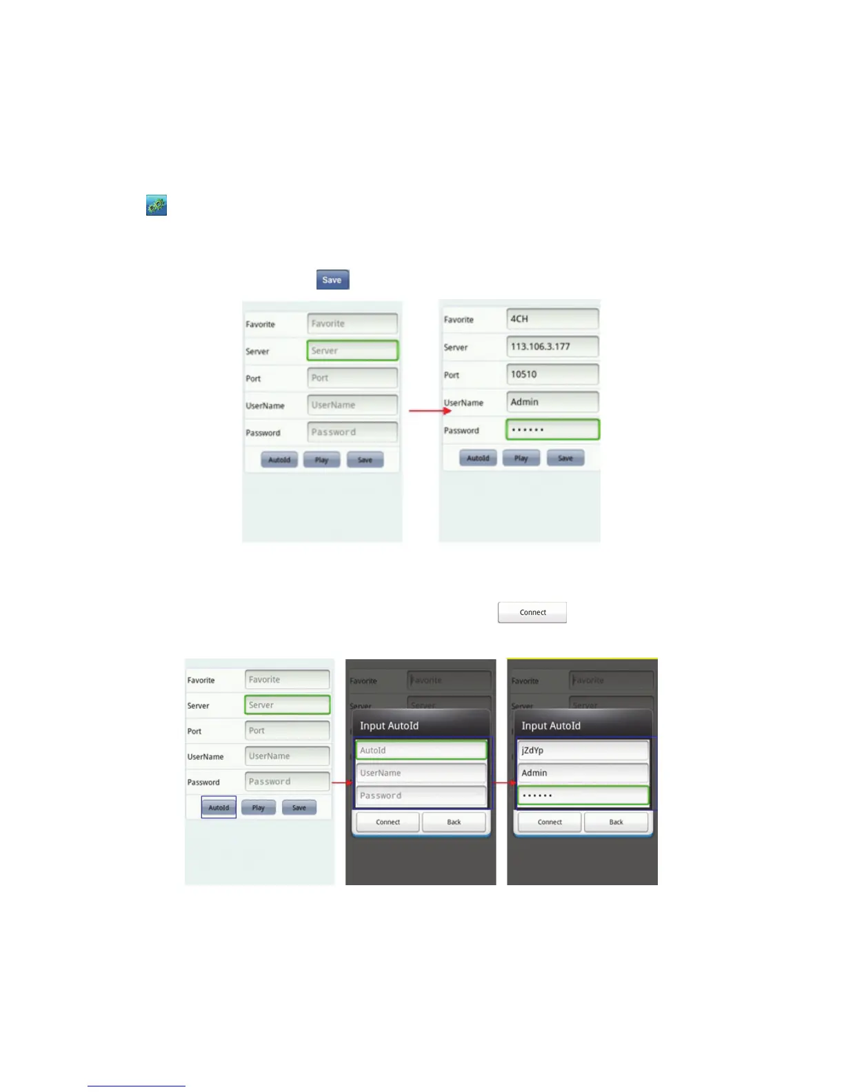 med ”AutoId”, ”User Name” och ”Password”. Klicka på ”