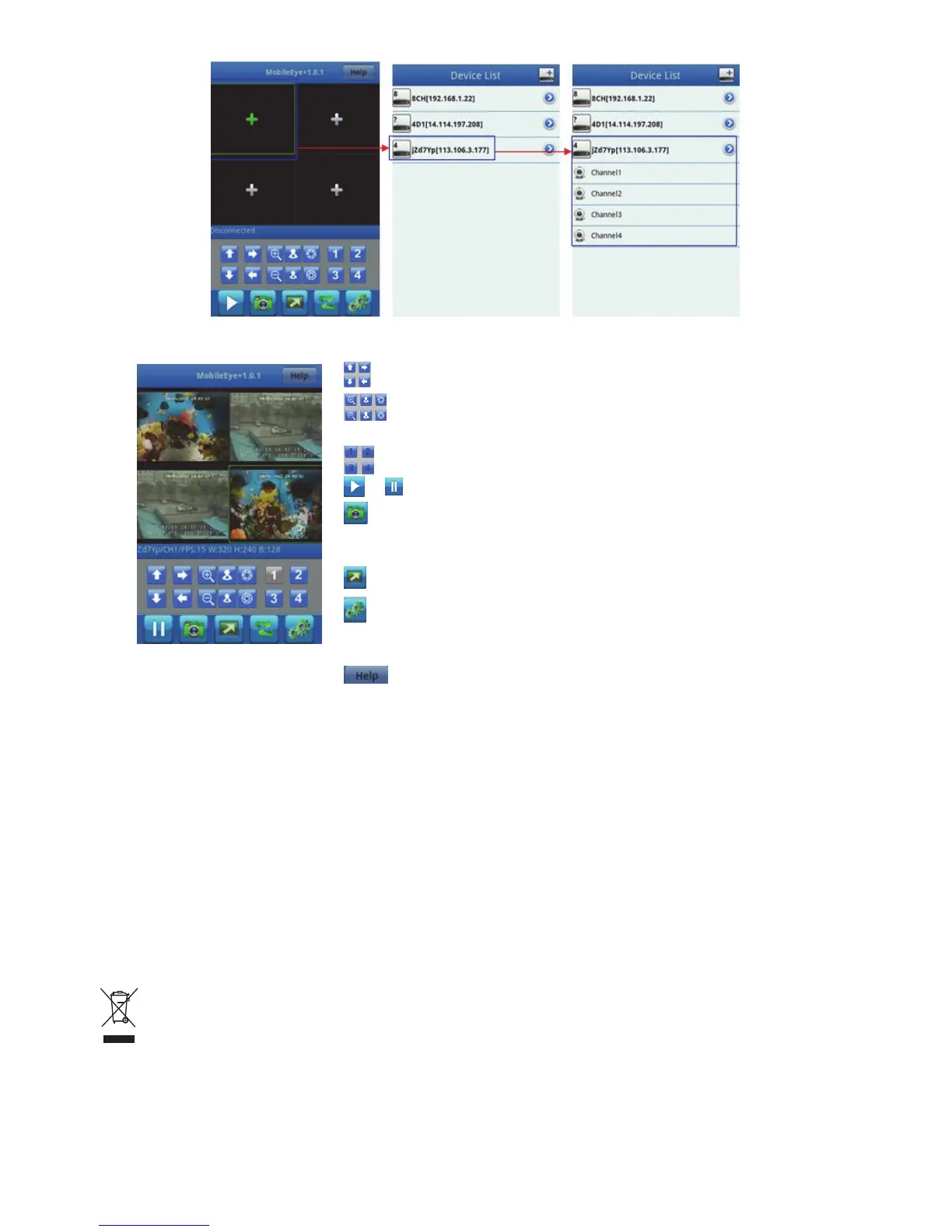 PTZ-kameran genom att använda följande ikoner för att styra PTZ.
