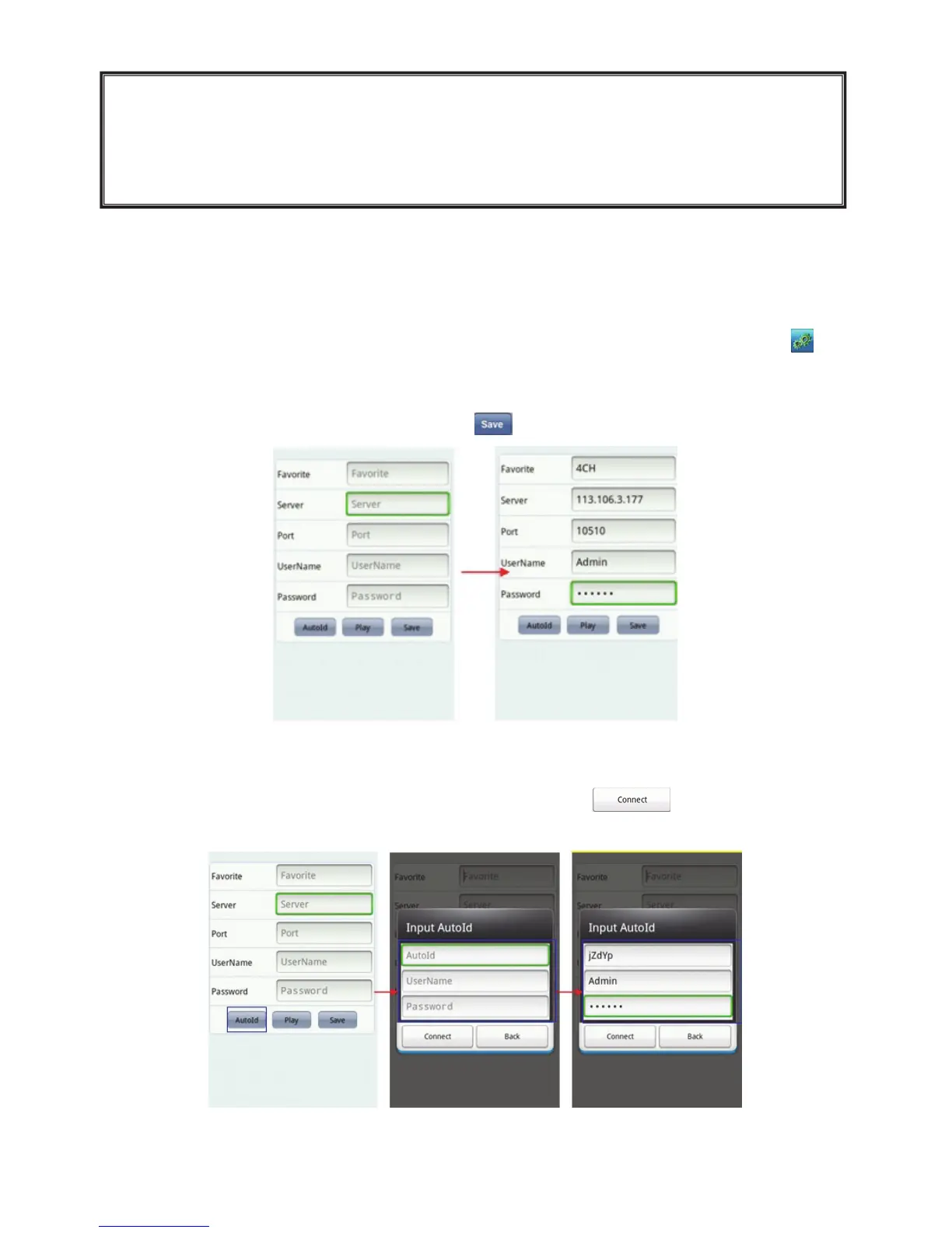 V okn s informacemi o zaízení nastavte jednotku DVR s „Favorite“, „Server“, „Port“, „User