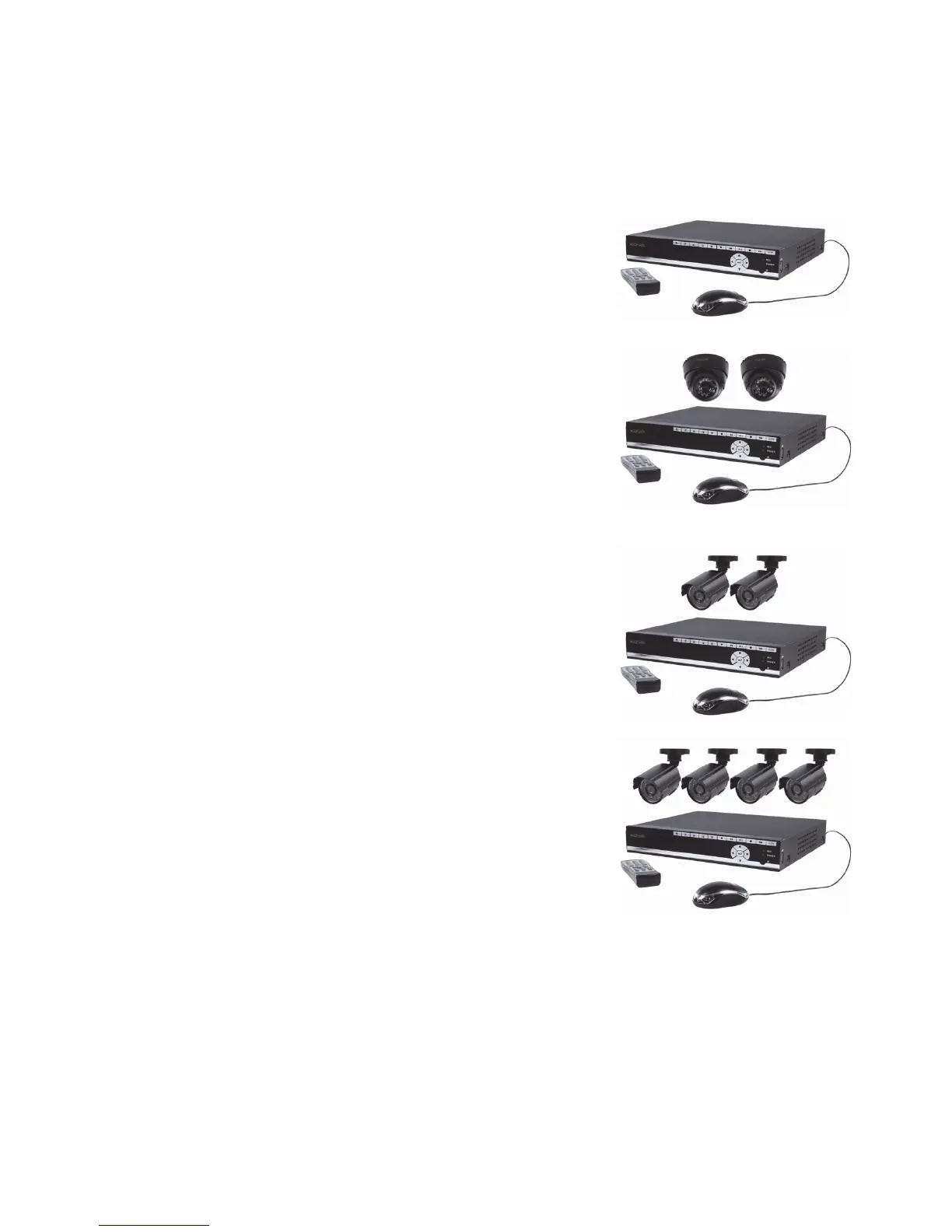 • 1x AC/DC adapter med udgangskabel til DVR og 4 kameraer