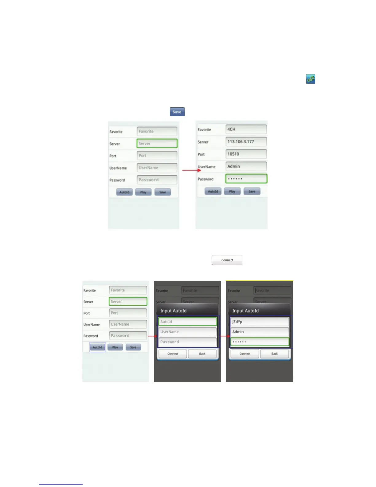 med ”AutoId”, ”User Name” og ”Password”. Klik på ”
