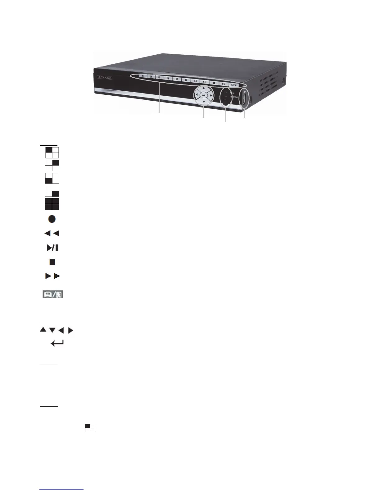 Beskrivelse av knappene og deres funksjoner på DVR-ens frontpanel:
