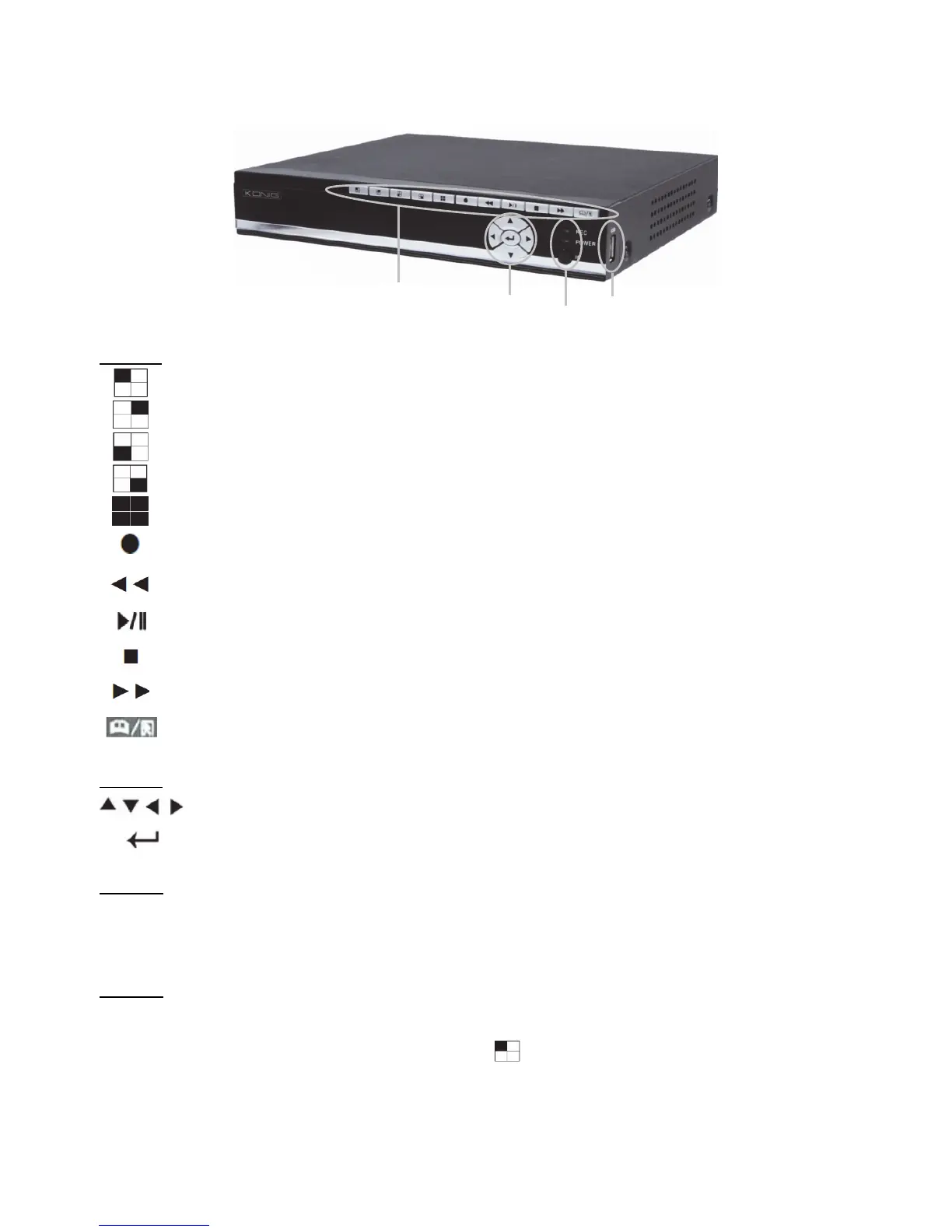 DVR'ın ön panelinde bulunan tuşların ve bunların fonksiyonlarının açıklaması:
