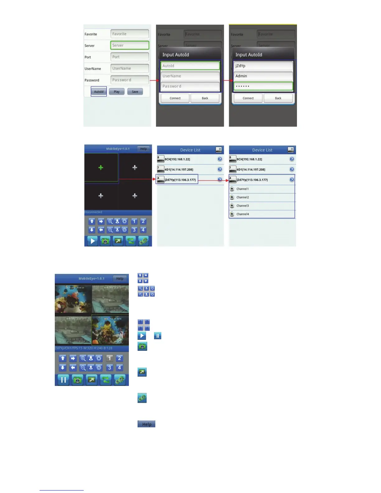 (3) Für die Verwendung von PTZ bewegen Sie bitte den roten Rahmen auf einen Kanal der 4 Kanal