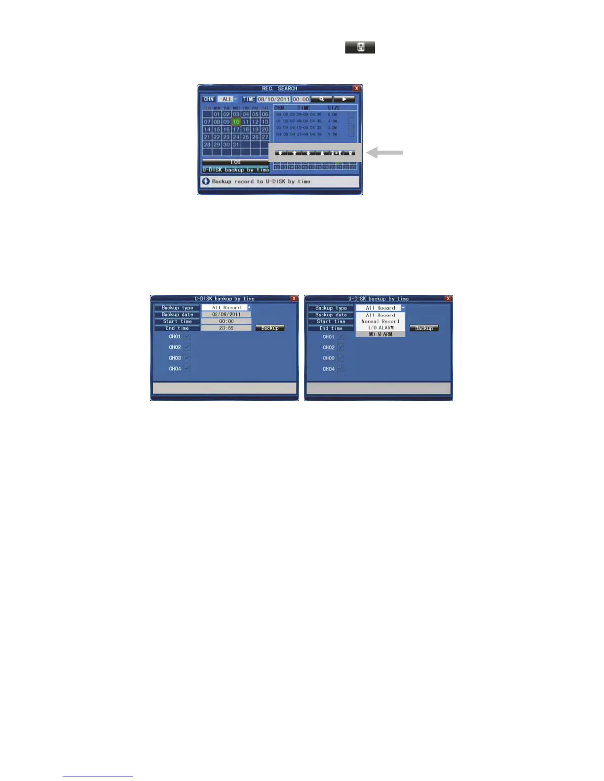 linkermuisknop om de U-DISK backup by time-zoekopdracht te openen (zoals weergegeven in de