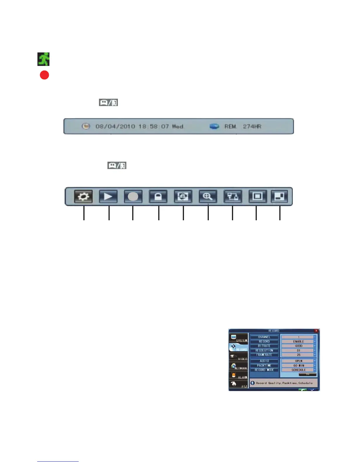 Selezionare Toolbar System settings Record per accedere al menu di registrazione. Potete