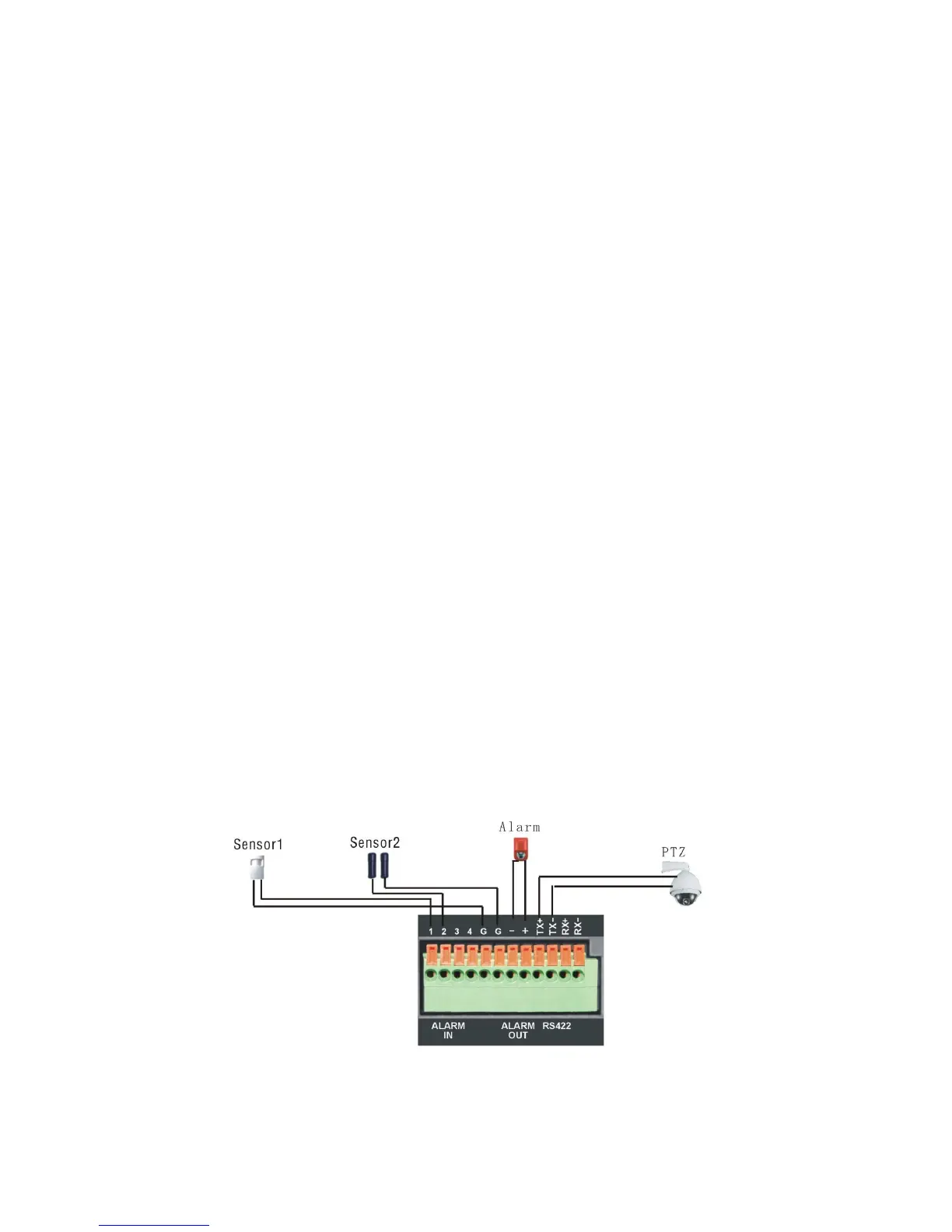 connectors and one Ground connection. Connect Alarm Out to the corresponding