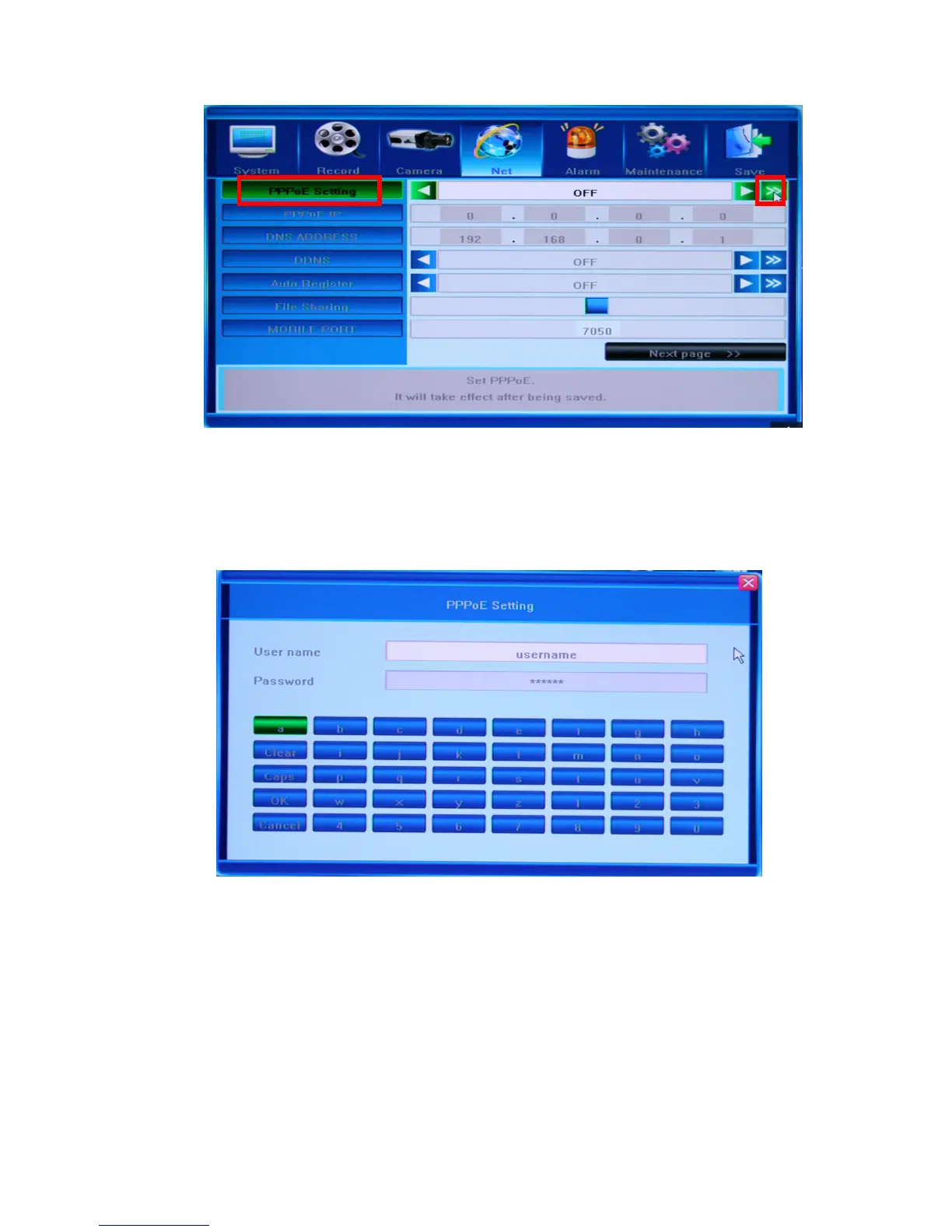 the PPPoE Setting screen to input this data.