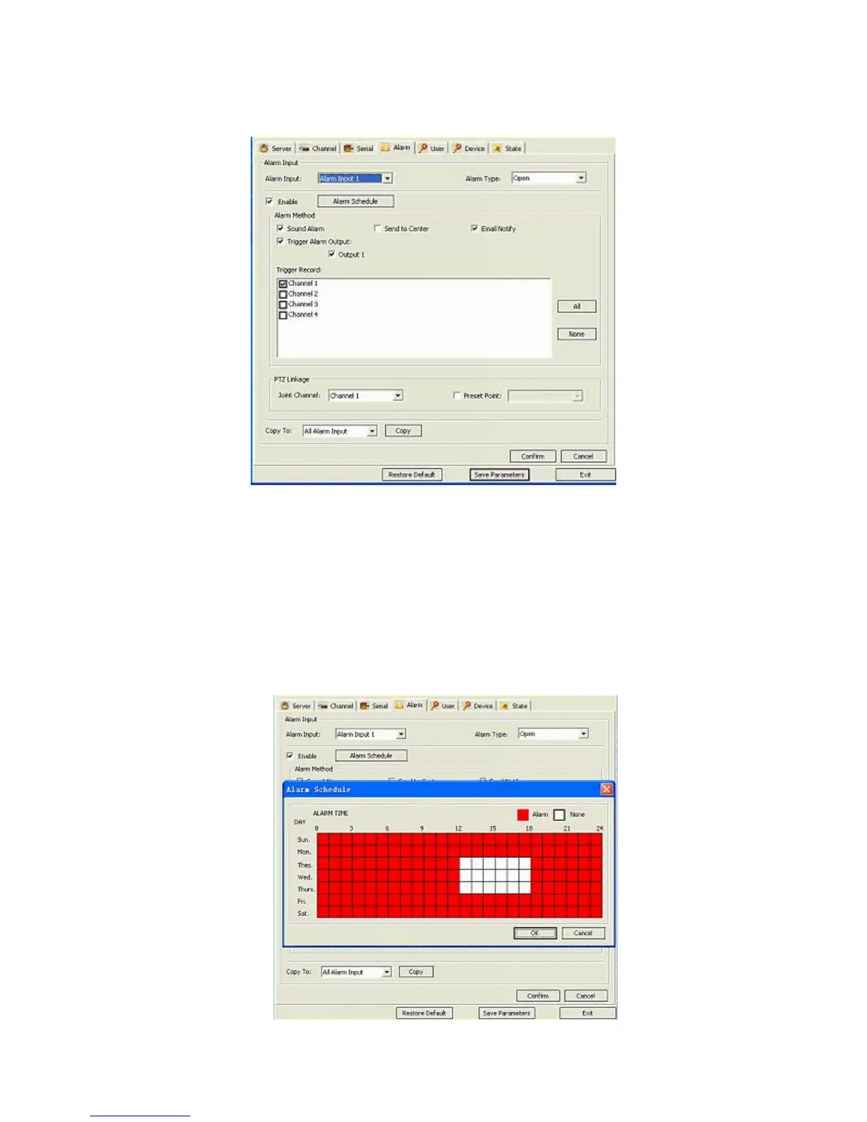 Checkbox: Enable with the Alarm Schedule button next to it. Pressing this button will bring