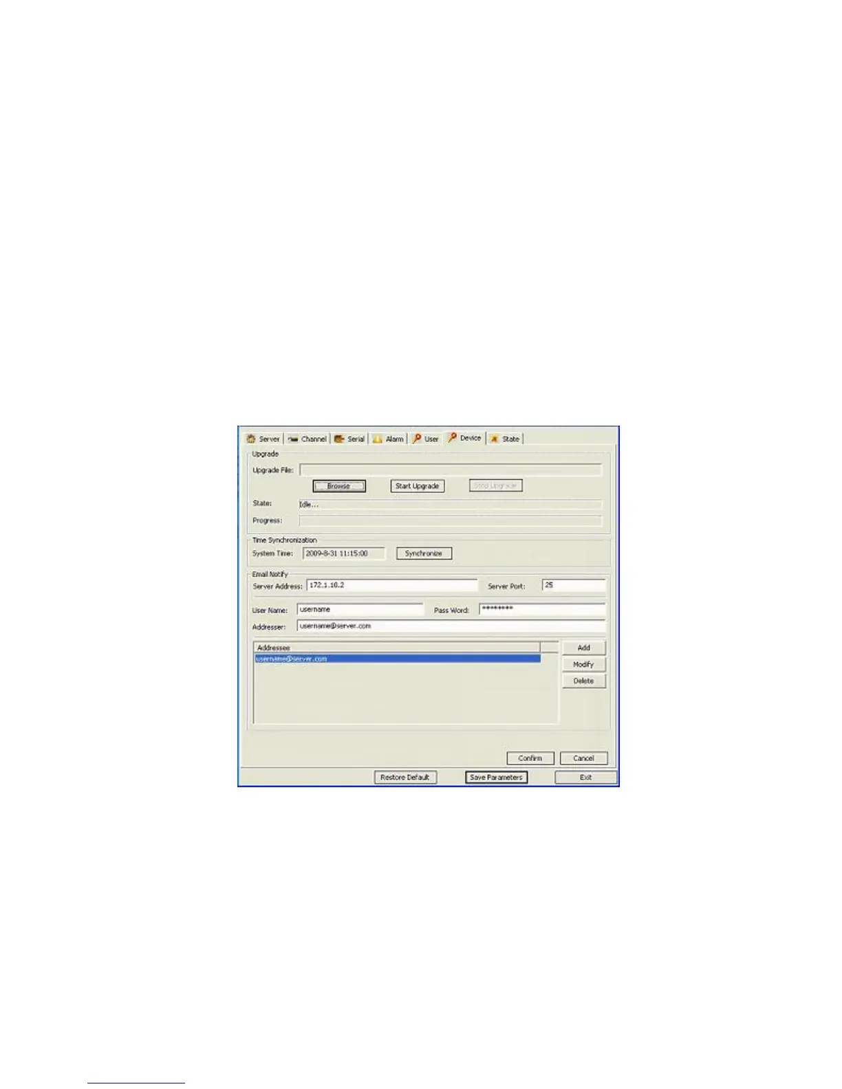 The functions of Confirm and Cancel buttons are self-explanatory and refer to the parameters