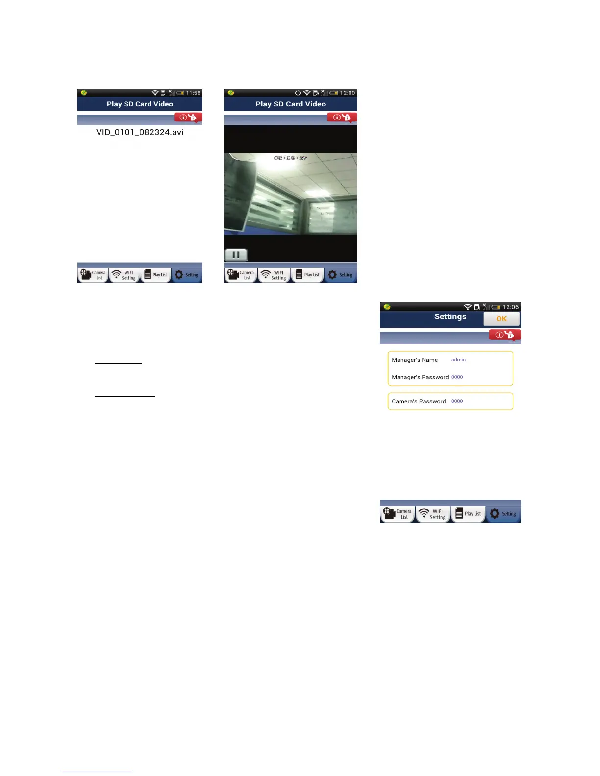 Camera password – able to view the camera.