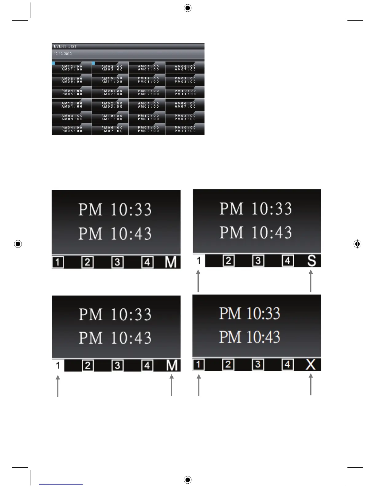cámaras emparejadas con el monitor). ■田 □1 □2 □3 □4 es la reproducción de todos los canales.