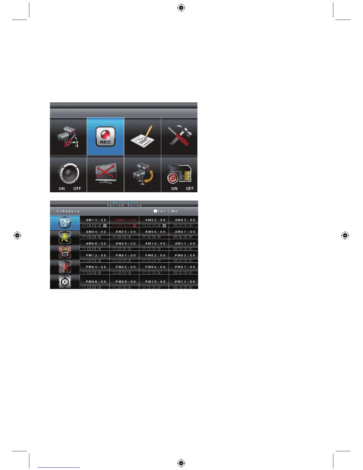 MOTION, SCHEDULE şi MANUAL. Unul din cele patru canale va avea şi sunet. Atunci când sistemul