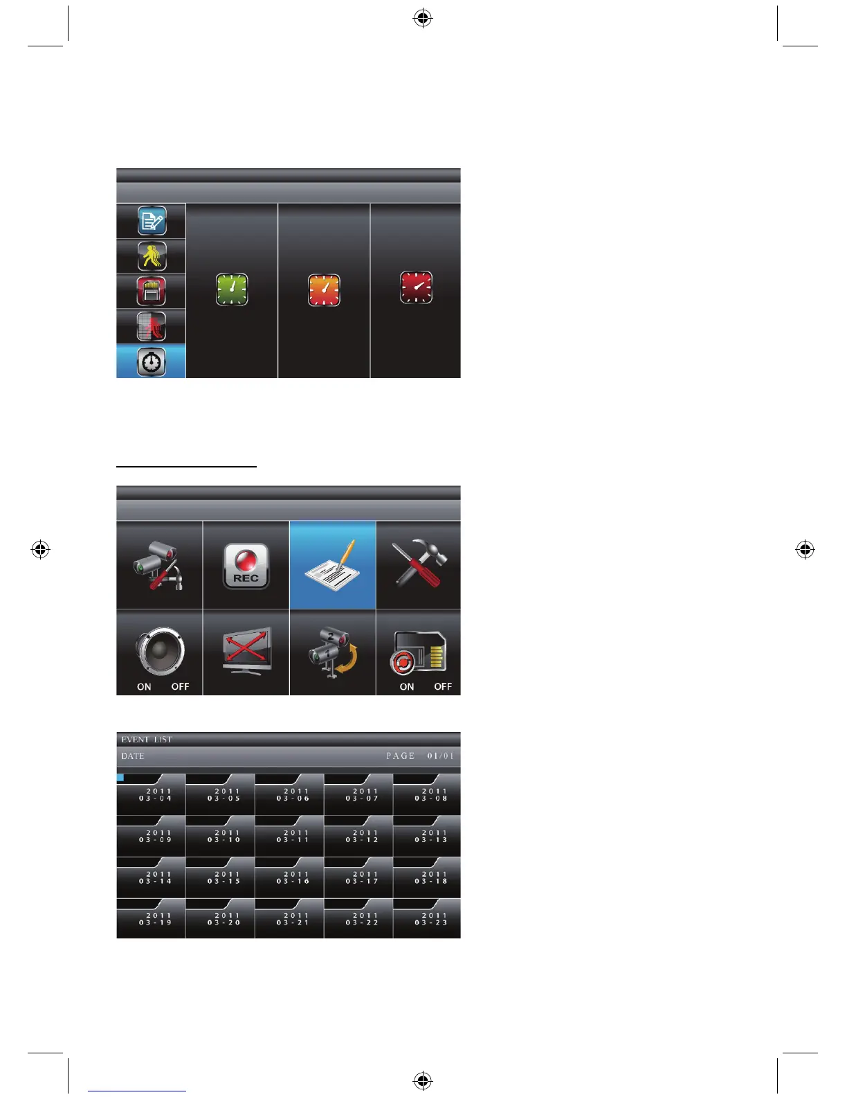 Sélectionnez EVENT LIST, appuyez une fois la touche MENU pour entrer dans le sous-menu.