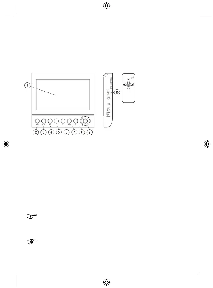 1. Tryck på strömbrytaren (9) för att starta bildskärmen.