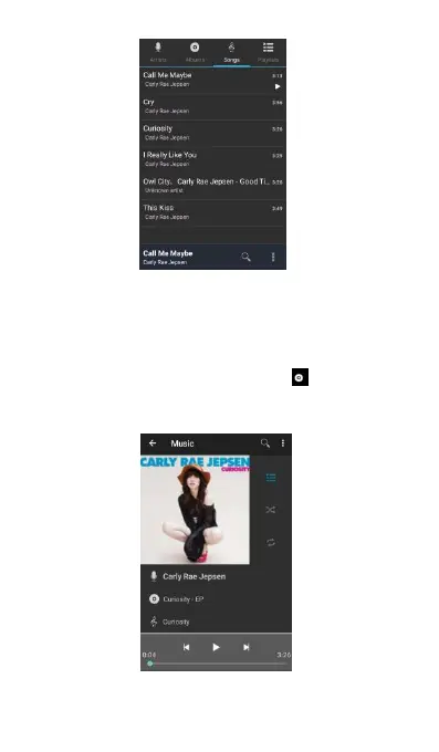 Touch any song will enter the playing screen.