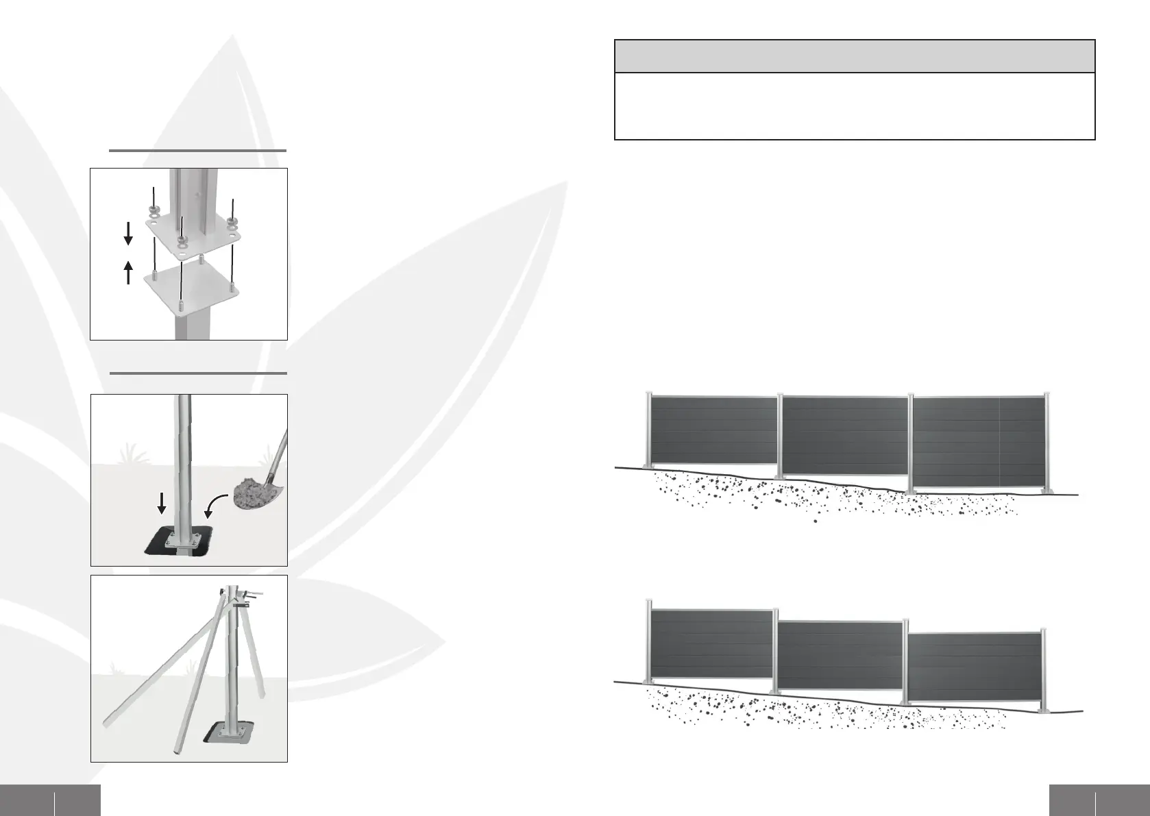 Plaats de omheiningspalen in beton b het plaatsen van de omheining op een hellende