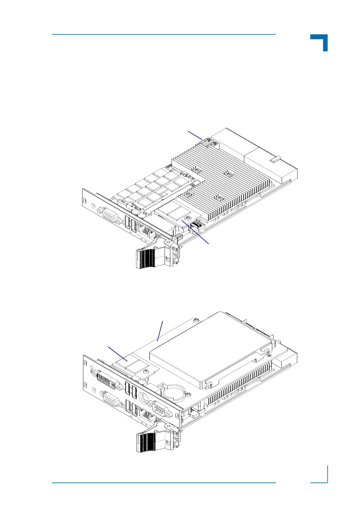 following figures show the placement of modules and peripheral devices on the CP308.