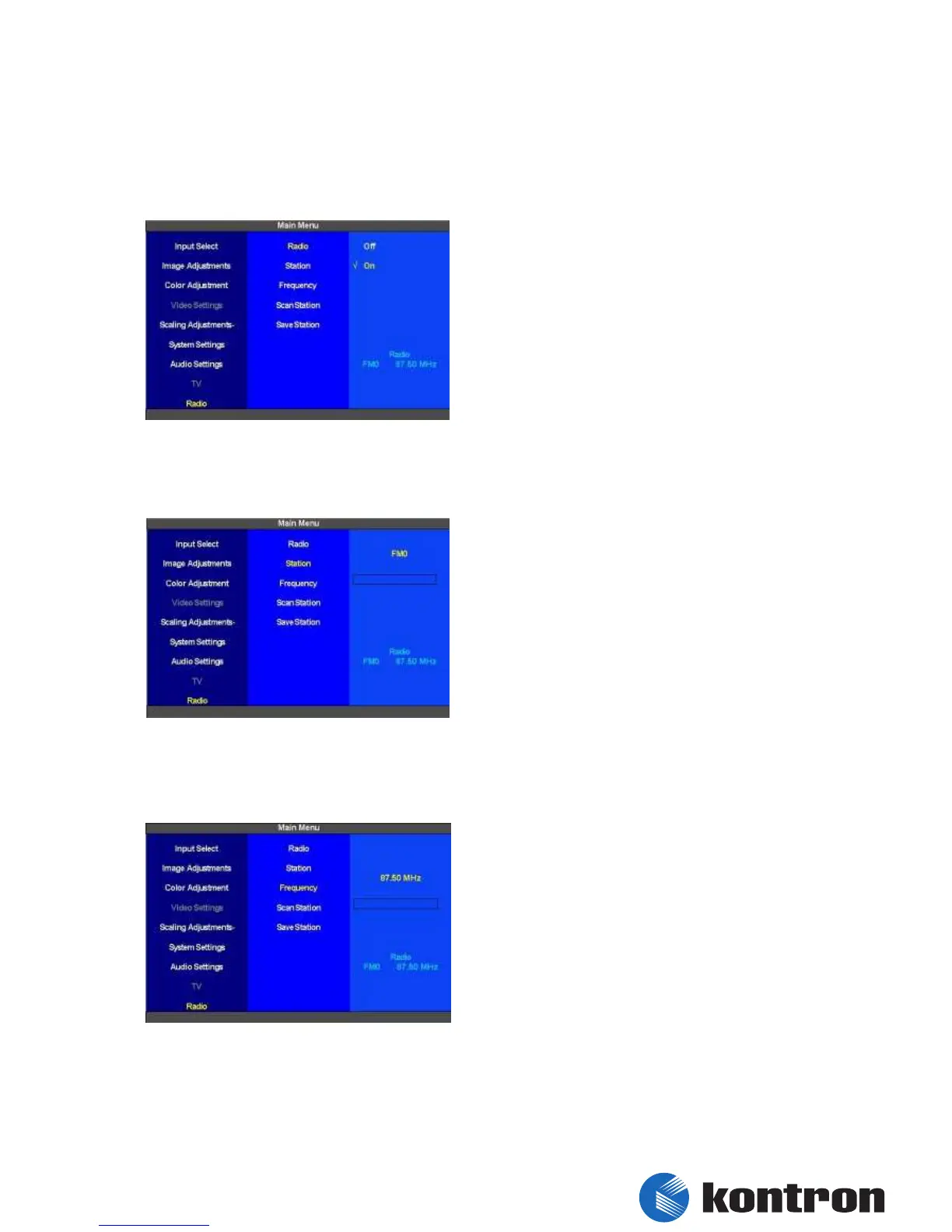 In this section the radio can be set up. When the TV-Tuner is activated the radio settings are not