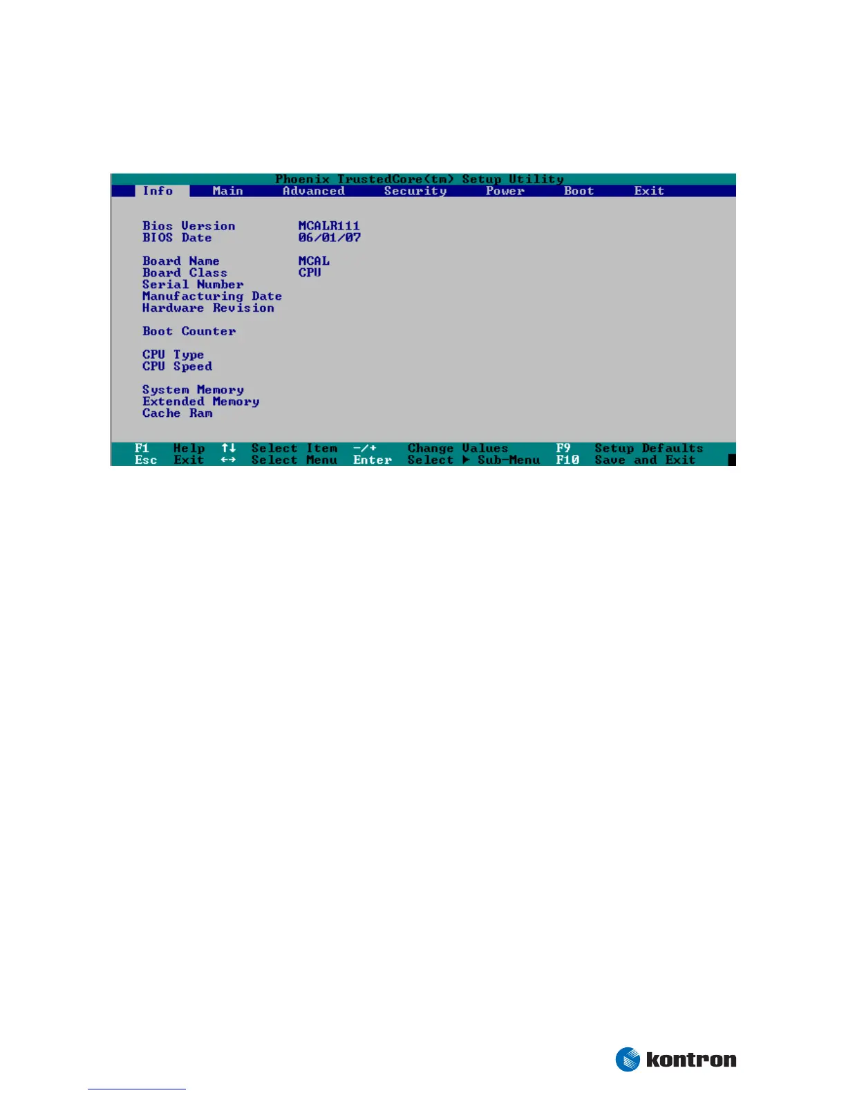 Kontron ETX CD - BIOS Setup Menus; Info Screen