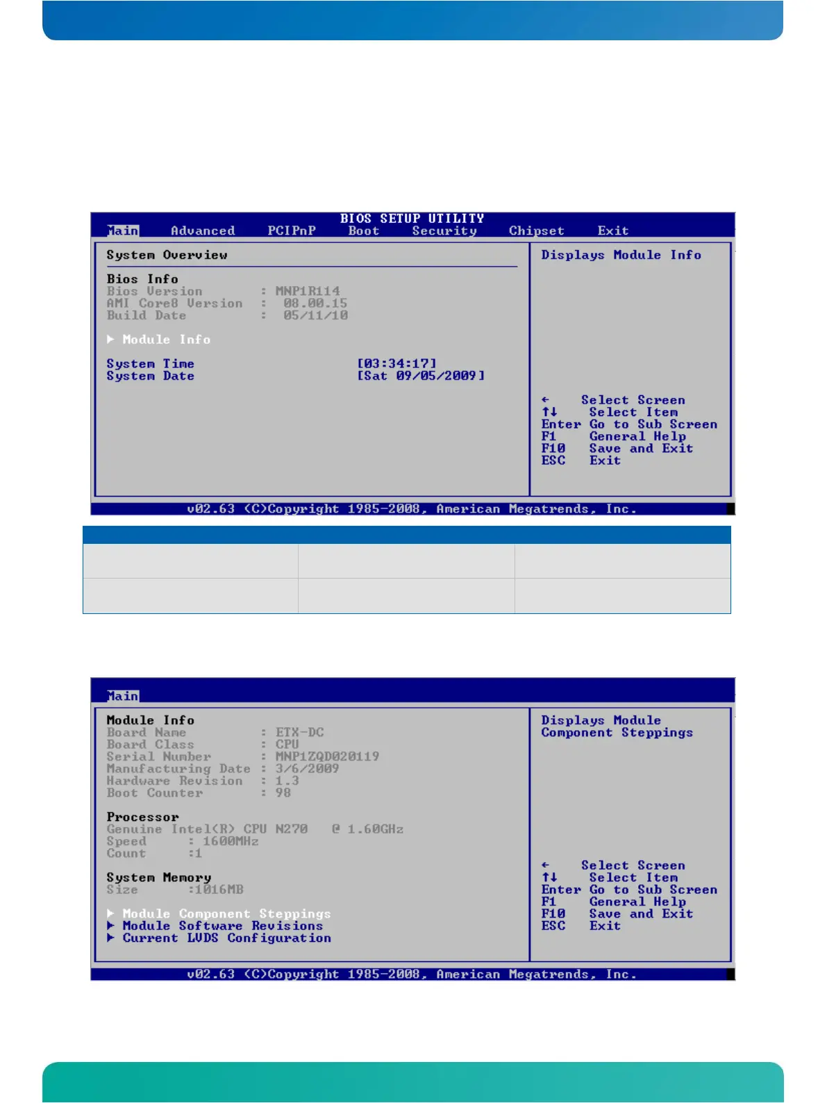 Kontron ETX-DC - BIOS Setup Menus
