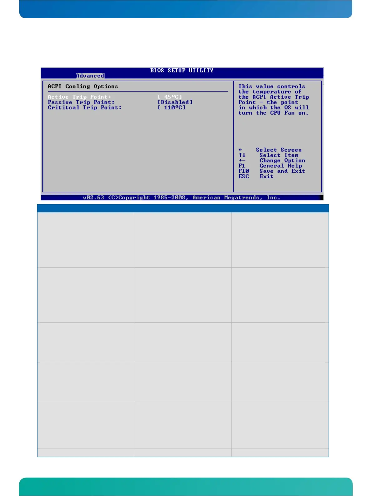 ACPI Cooling Options Menu