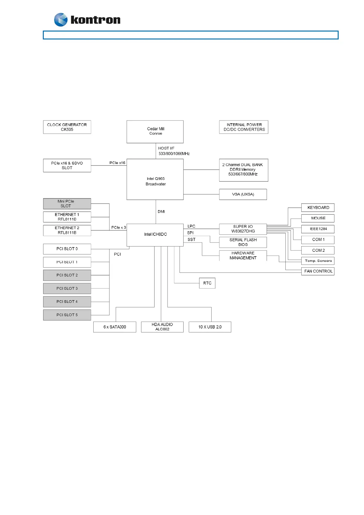 The block diagram below shows the architecture and main components of the KT965 boards. The two key