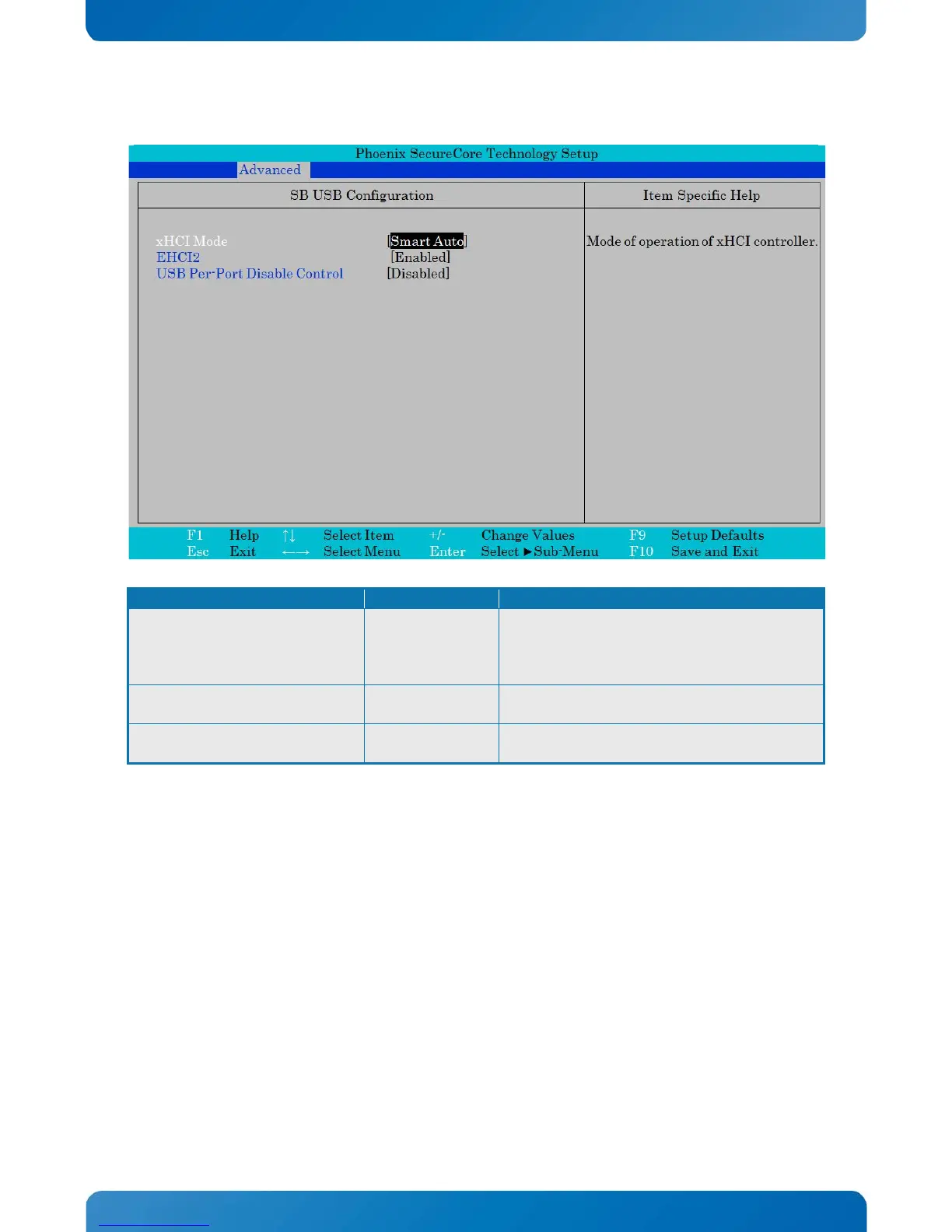 SB USB Configuration Item Specific Help