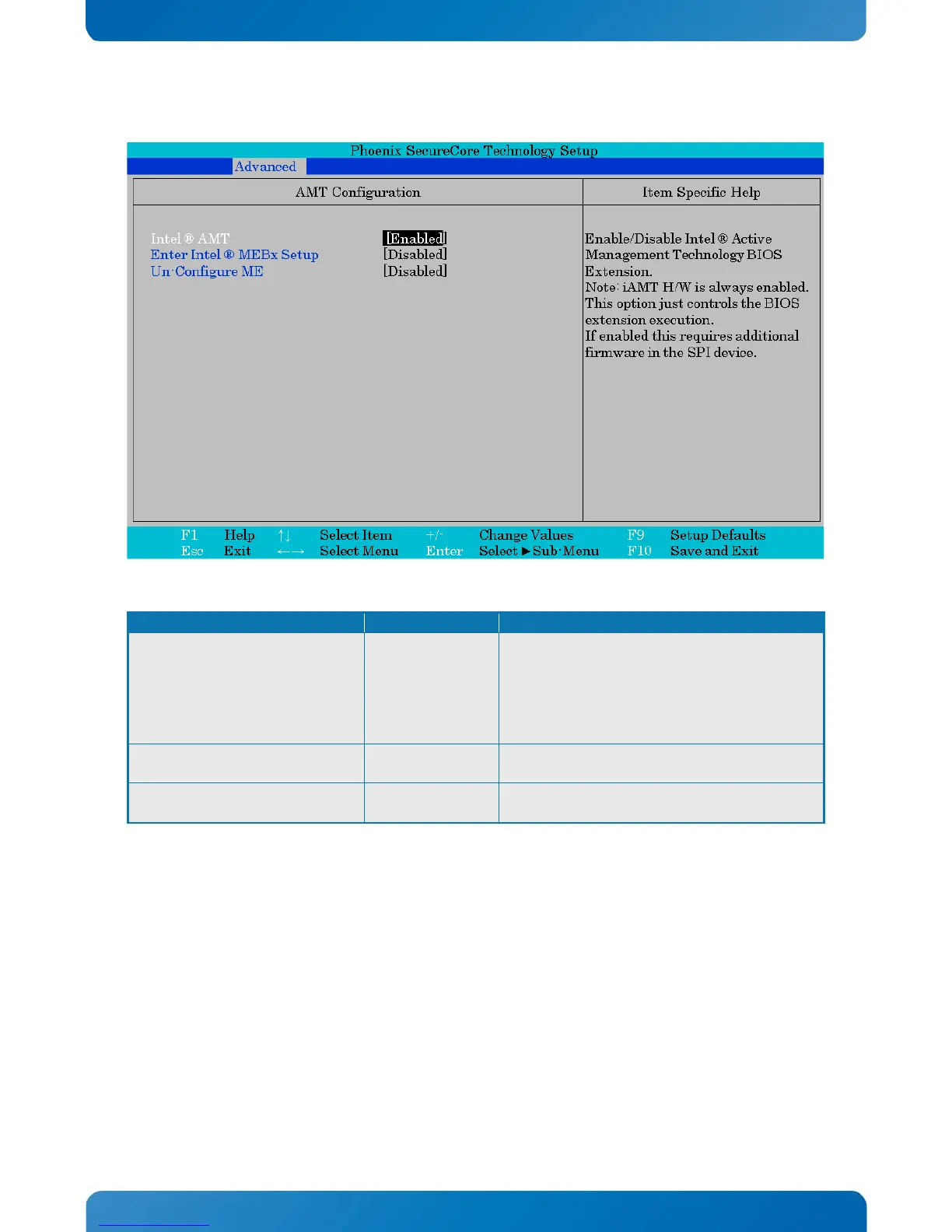 Note: iAMT H/W is always enabled.