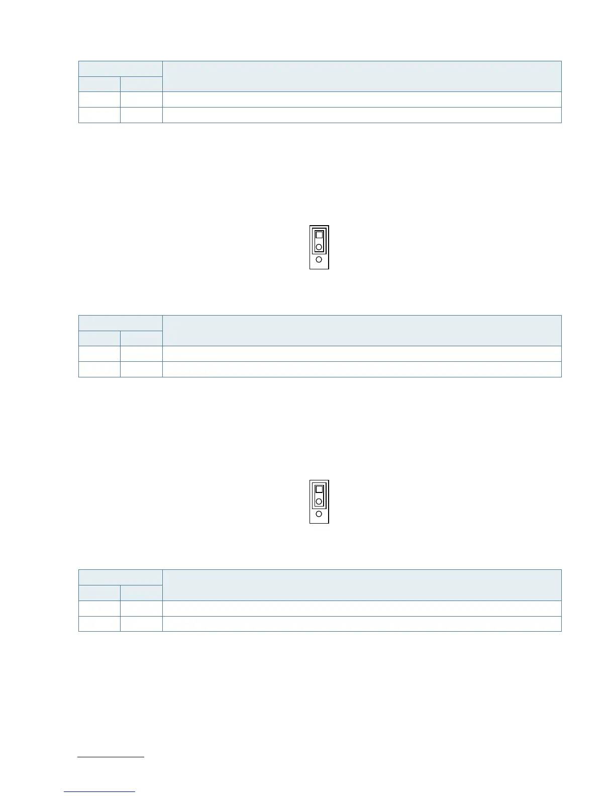“X” = Jumper set (short) and “-” = jumper not set (open)
