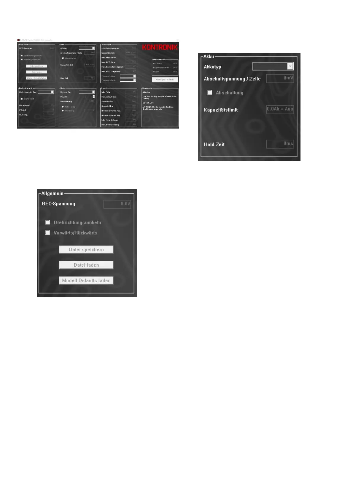o Modell Defaults laden - Setzt alle Werte auf