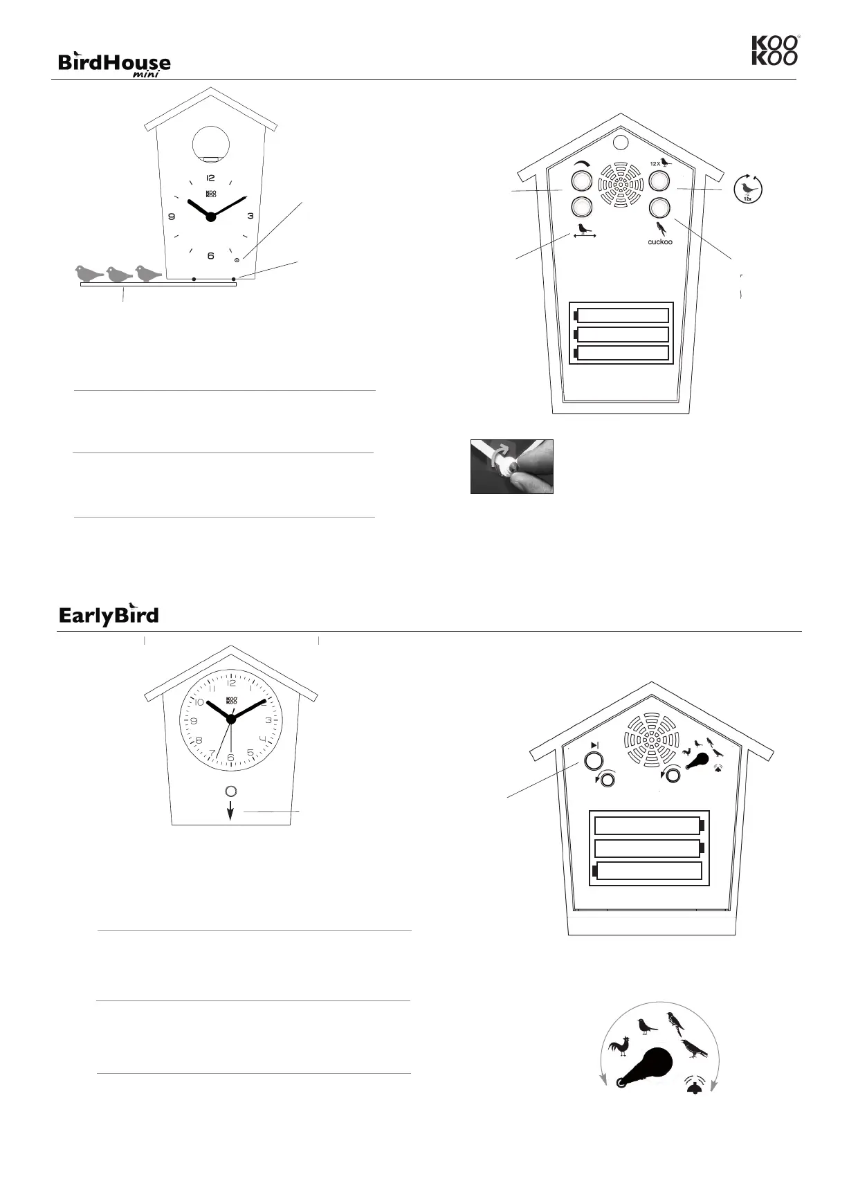 • every hour on the hour the cuckoo calls or 12 songbirds sing