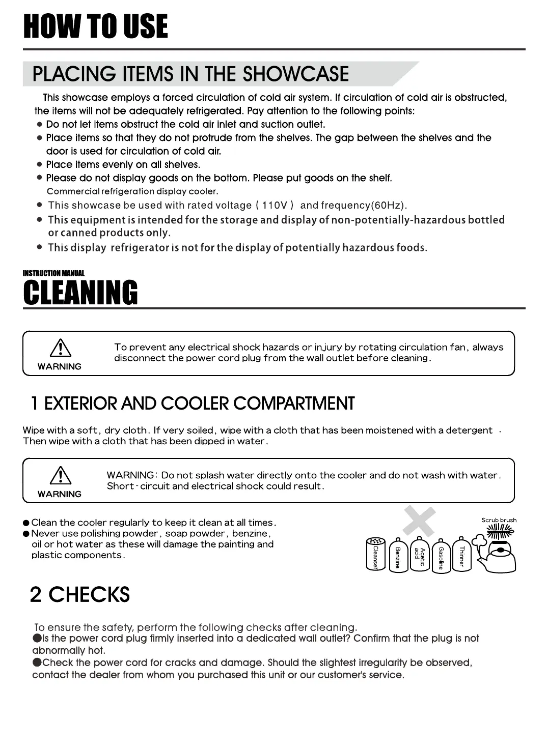 Kool-It KGM-75 - Placing Items in the Showcase; Cleaning