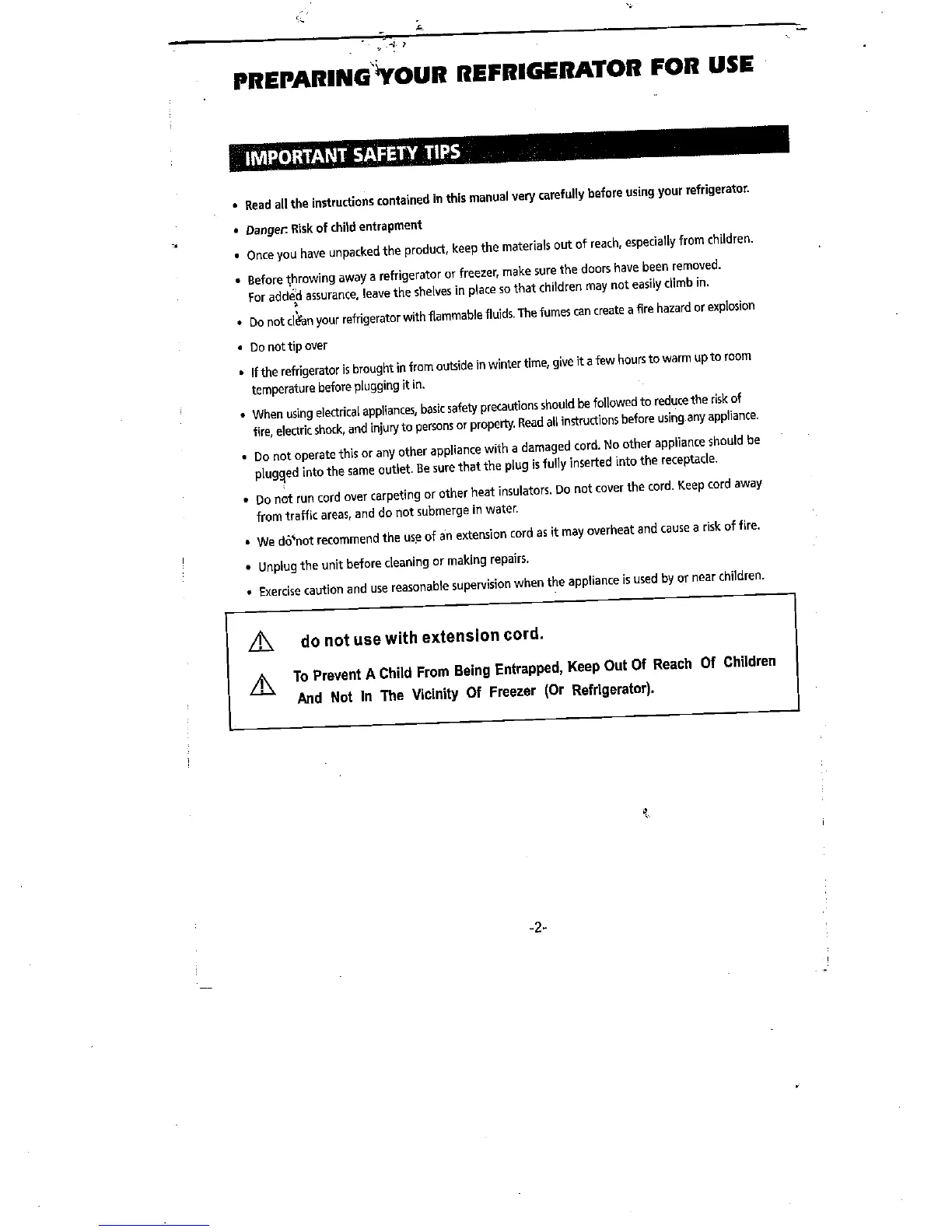 Koolatron BC-128 - Preparing Your Refrigerator for Use; Important Safety Tips