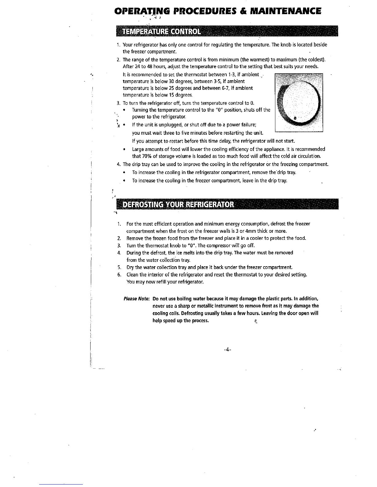 Koolatron BC-128 - Operating Procedures & Maintenance; Temperature Control; Defrosting Your Refrigerator