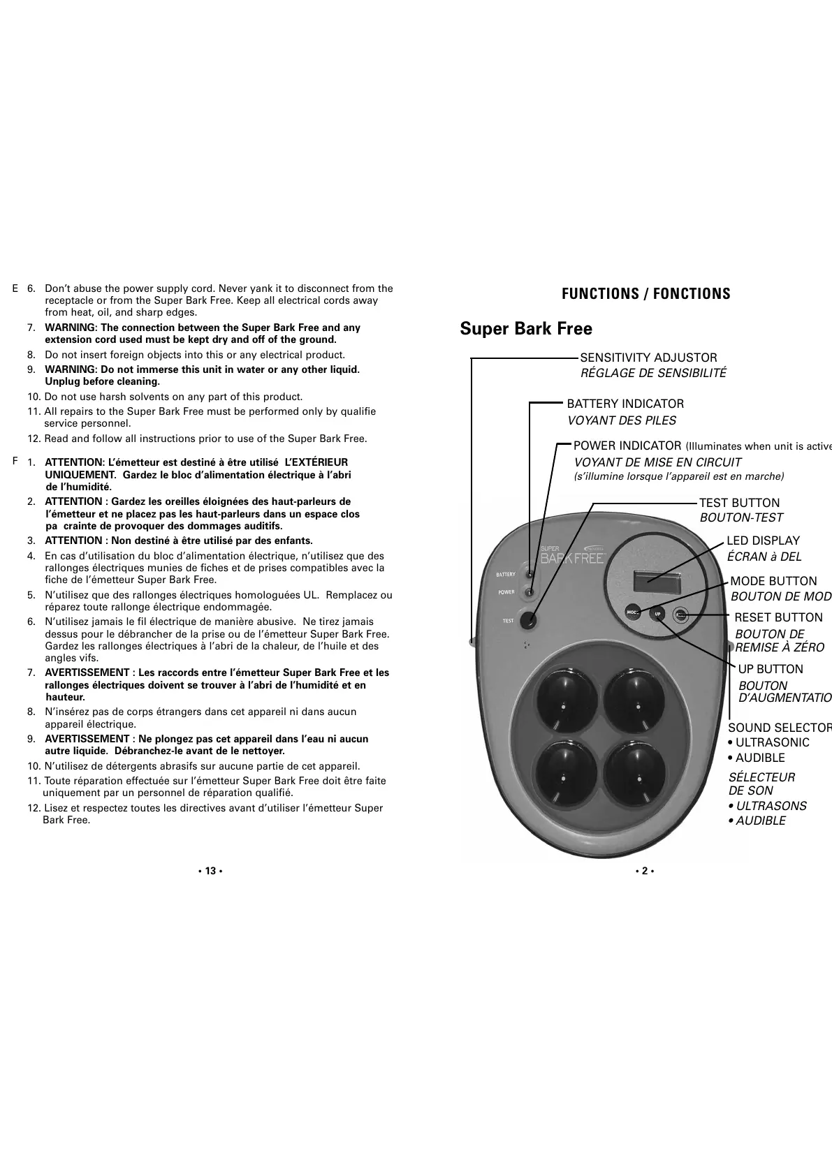 12. Read and follow all instructions prior to use of the Super Bark Free.