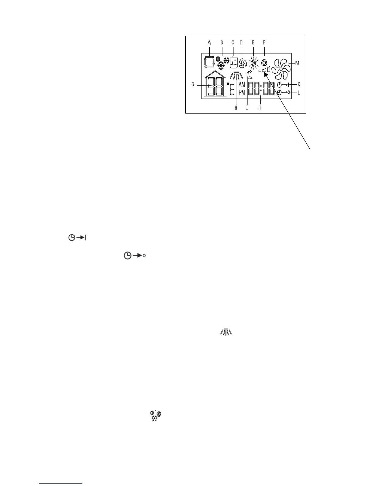 In the diagram above, the letter “J” points to the adjustable time display. To adjust the time, Press FAN,