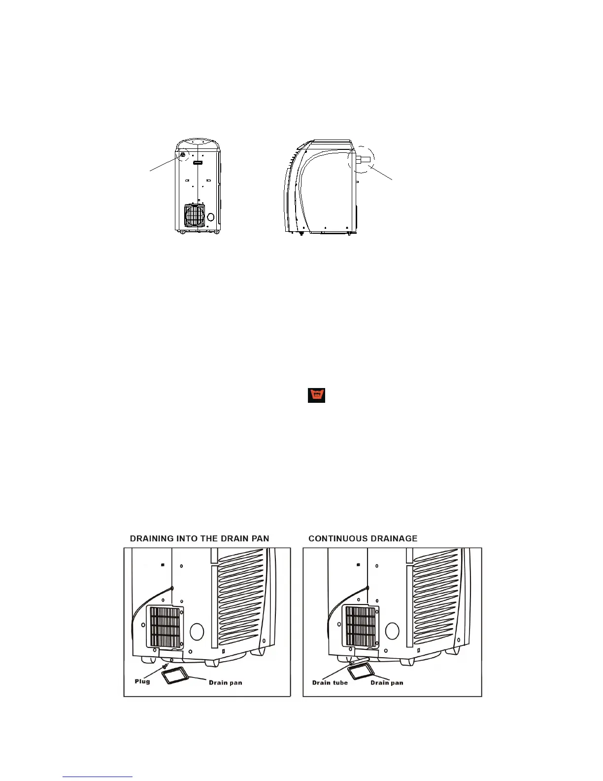 When the drain pan is full, replace the rubber plug into the drainage hole to stop the water flow.