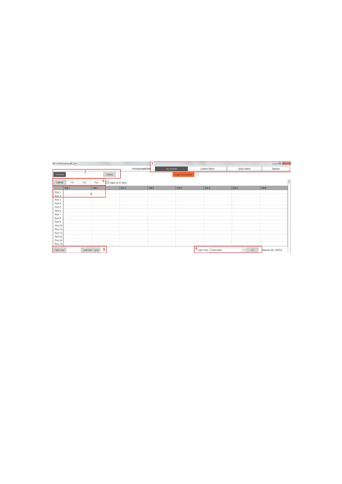 FN, FN2, FN3: Available 3-layer configuration, set the enable button in the lower on-screen