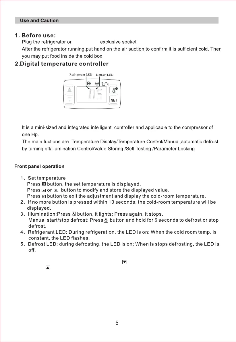 KoolMore CDC-7C-BK - Use and Caution; Initial Setup and Pre-Use Checks; Digital Temperature Controller Operation