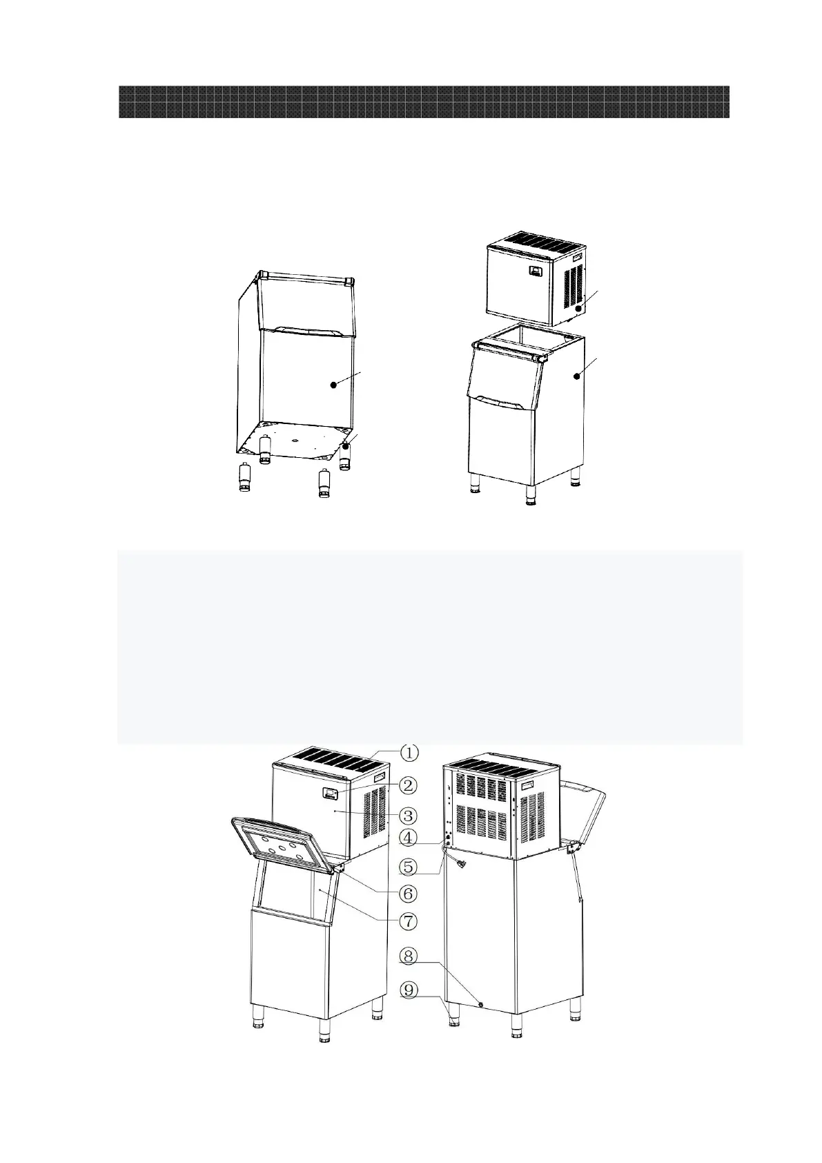 Put the ice cabinet on the floor and place the bin on the ice cabinet. (Note; it should be