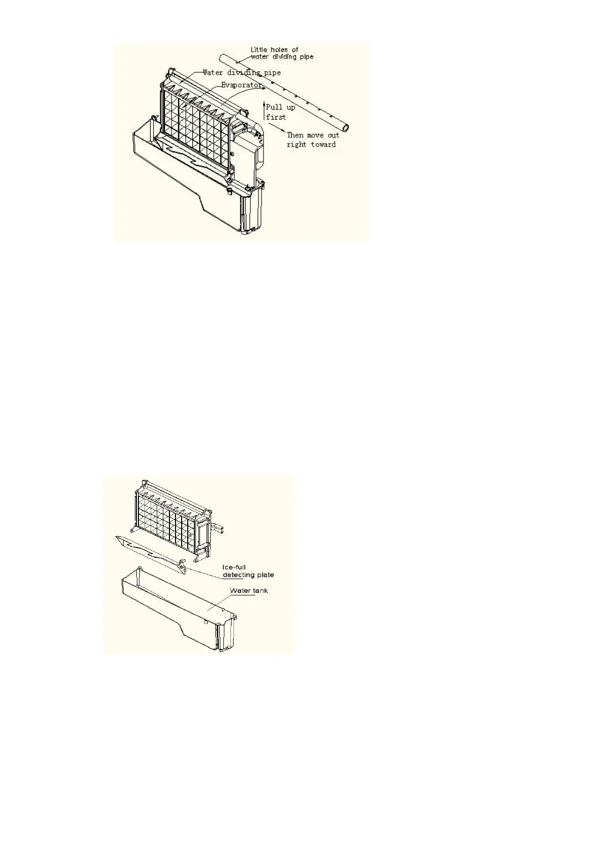 3、 When there are ice cubes on the surface of the evaporator, but can’t fall down easily, do not use the