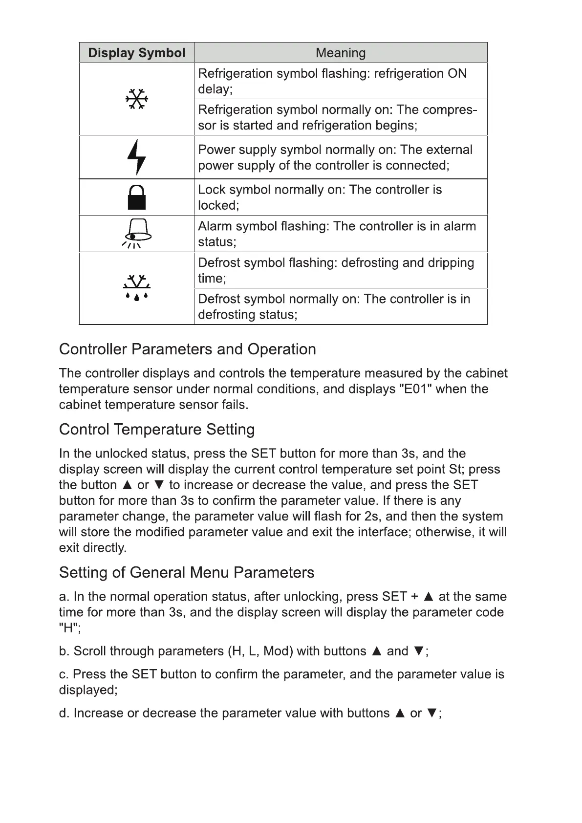 KoolMore KM-PHR-45C - Display Symbols and Parameter Settings
