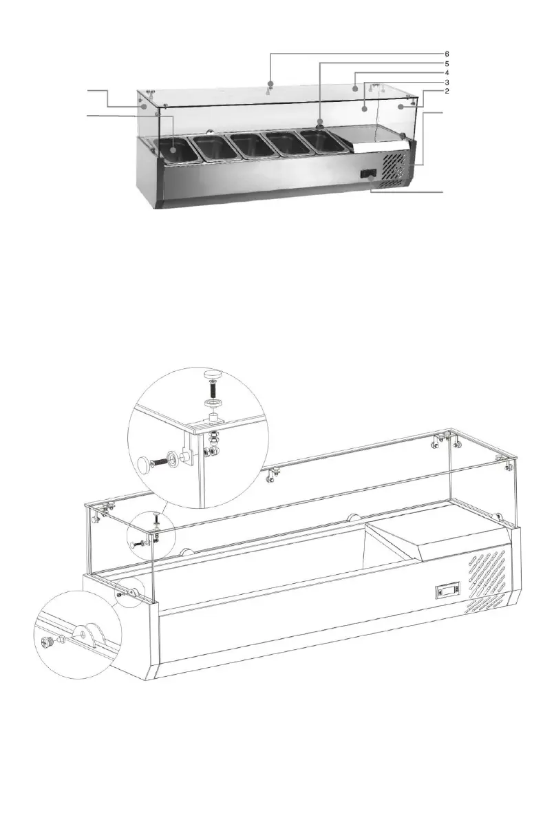 2- Fix the back pane 5 to the side panes 1 and 2 by Means brackets 6.